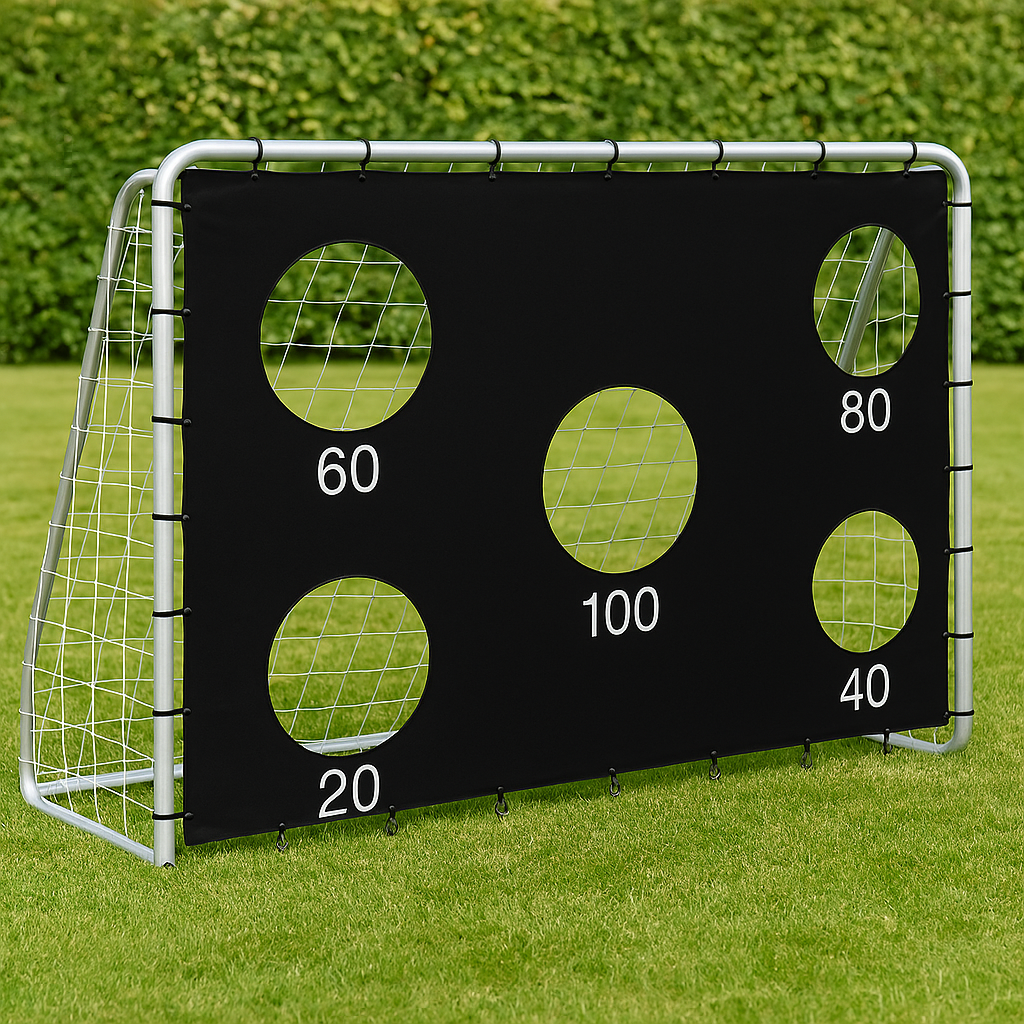 Ta solidna bramka piłkarska to idealne rozwiązanie dla dzieci, młodzieży i dorosłych – zarówno do intensywnego treningu, jak i rodzinnej zabawy. W zestawie otrzymujesz również matę celowniczą z punktacją, która pozwala ćwiczyć precyzję strzałów i organizować emocjonujące rywalizacje.